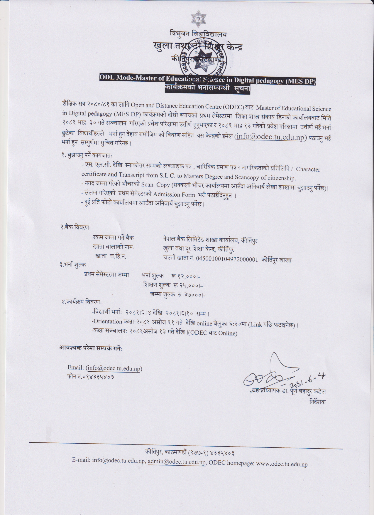Masters of Educational Science in Digital Pedagogy(MESDP) कार्यक्रमको भर्ना सम्बन्धी सूचना